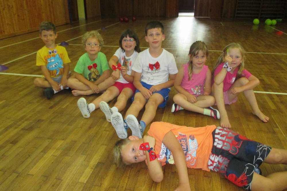 Mimo sportovní a zábavné soutěže si také děti zpívaly, vyráběly látkové mašle a motýlky, malovaly pohádku, stavěly domečky v lese. A protože bylo celý týden slunečno nechybělo ani koupání a soutěžení ve vodě. Zpestřením celého tábora byl čtvrteční výlet do Lanáčku v Otrokovicích, kde si děti vyzkoušely lanové překážky, trampolíny apod.
