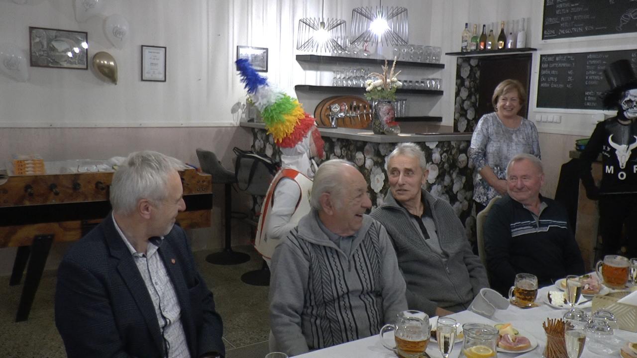 V kavárně Horní hospody se tentokrát sešlo 10 oslavenců, které hned v úvodu přivítaly Malým kulturním vystoupením žačky třetí třídy Adriana Kneislová a Anna Kochetková. Setkání bylo protchnuto mikulášskou atmosférou, kterou umocnil i příchod loufra (Oliver Hanák) a muřína (Natan Niesner ), kteří obdarovali jubilanty sladkými perníčky.